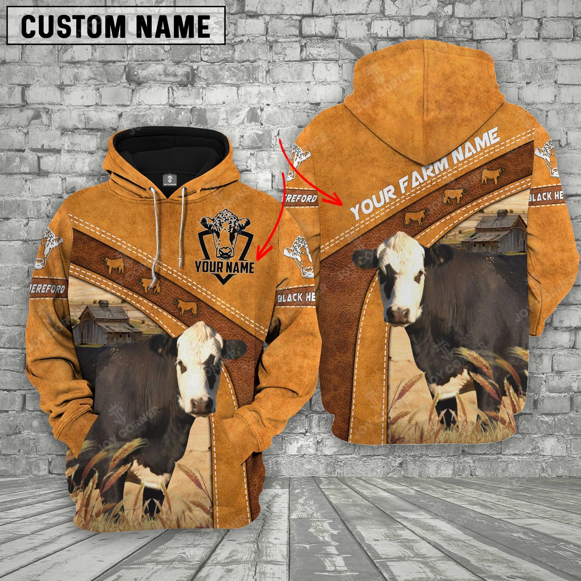 Novacare Black Hereford 3D Customized Name - Farm Name Hoodie