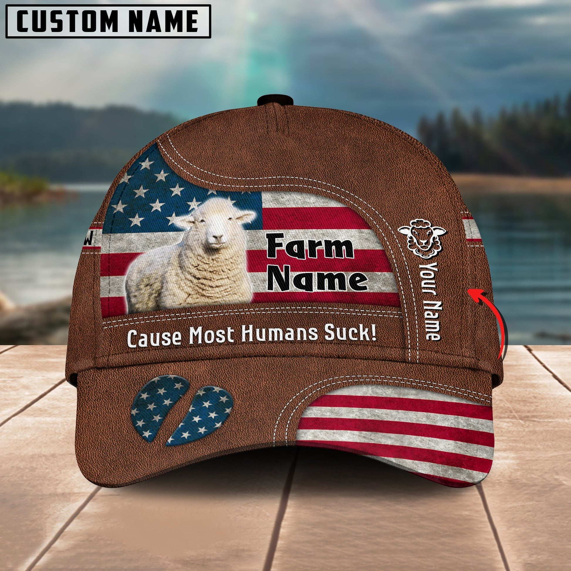 Novacare Sheep US Flag Customized Name And Farm Name Cap